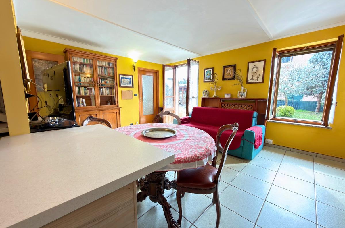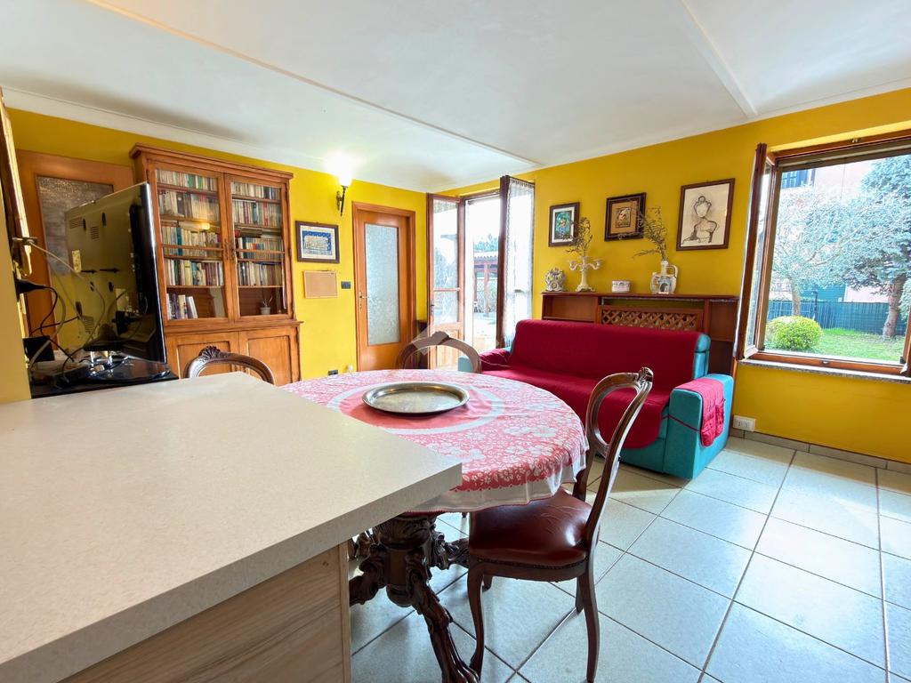 L’ingresso conduce direttamente alla zona giorno composta da soggiorno con cucina a vista, ambiente luminoso e funzionale, con affaccio diretto sull’area esterna.