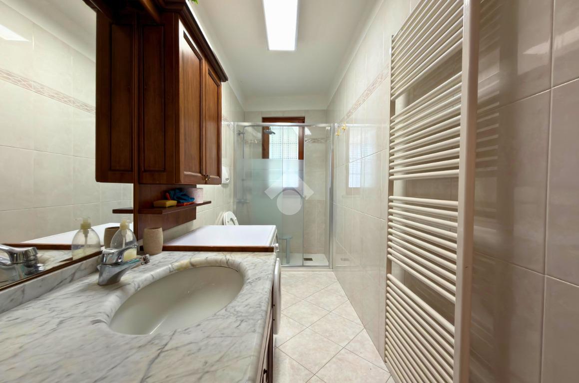 La zona notte è composta dalla camera matrimoniale e dal bagno finestrato, recentemente ristrutturato, completo di box doccia e comoda zona lavanderia.