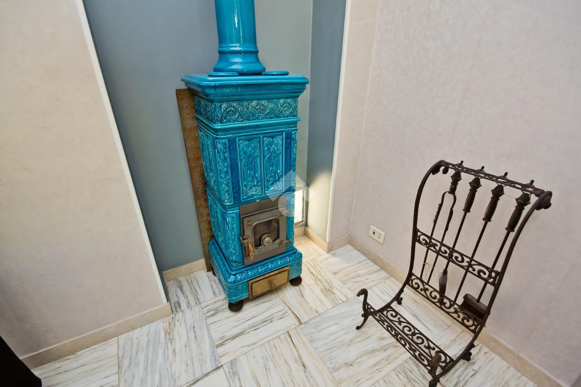 La zona giorno si compone di un salone doppio con area soggiorno e sala da pranzo, impreziosita da una stufa elegante e dall’accesso diretto al terrazzo posteriore, collegato a sua volta al giardino privato completo di area barbecue e patio coperto, ideale per momenti conviviali all’aperto.