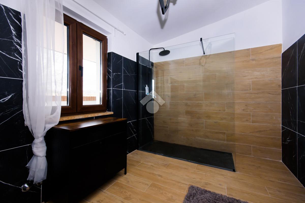 L’abitazione è inoltre dotata di impianto fotovoltaico di ultima generazione e di pannelli solari termici a supporto della produzione di acqua calda sanitaria. Nella zona parcheggio è presente una wall box per la ricarica di veicoli elettrici.