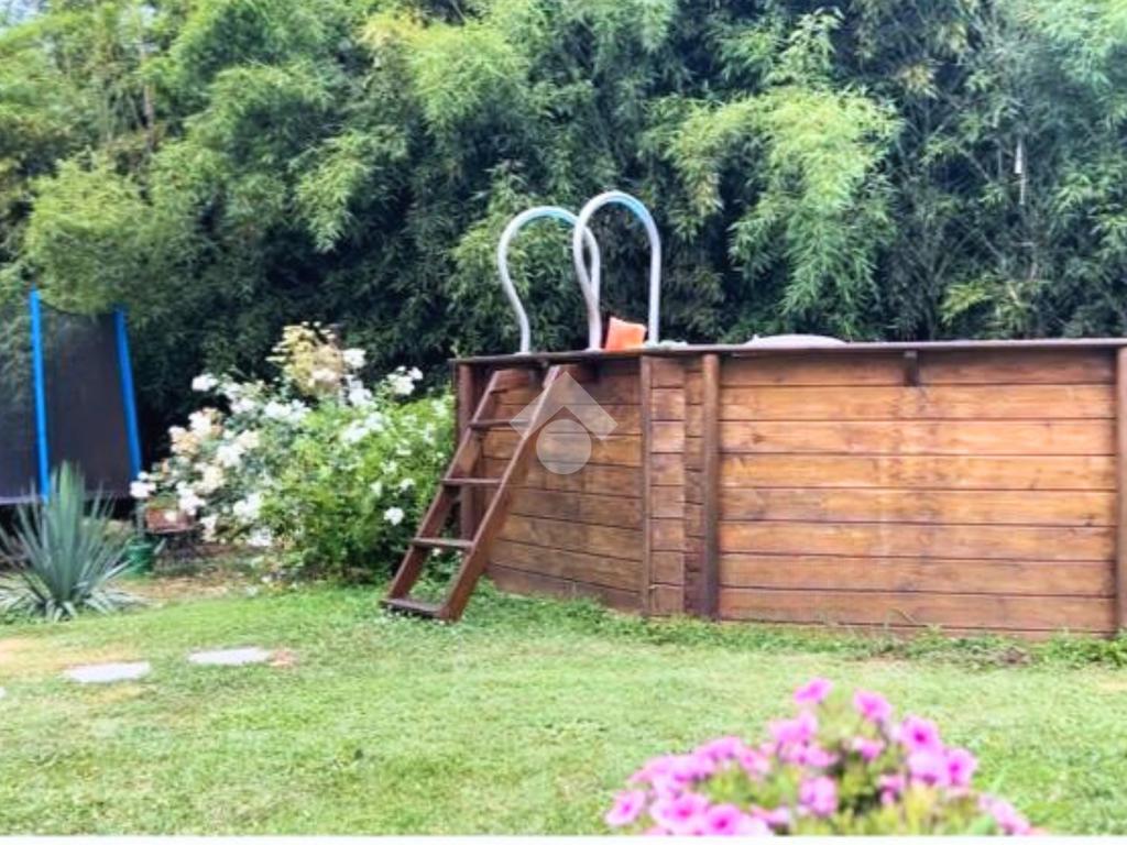 Completano la proprietà l’area esterna pianeggiante di circa 2.000 mq, ben curata con piscina fuori terra di 5,1 m riscaldata tramite pompa di calore, ideale per godere della tranquillità collinare in ogni stagione, e una comoda autorimessa coperta adatta a più autovetture.